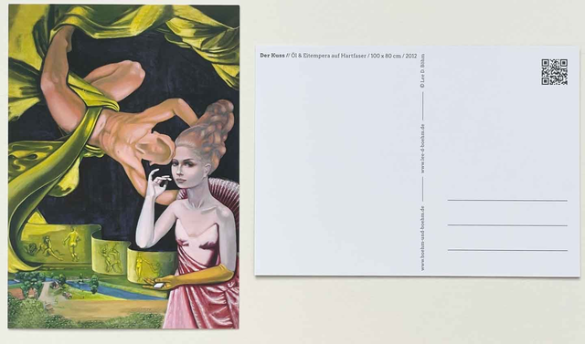 Kunstpostkarte zu den Werken Lee D. Böhms - hier "Der Kuss" / Eitempera & Öl auf Hartfaser / 100 x 80 cm / 2012