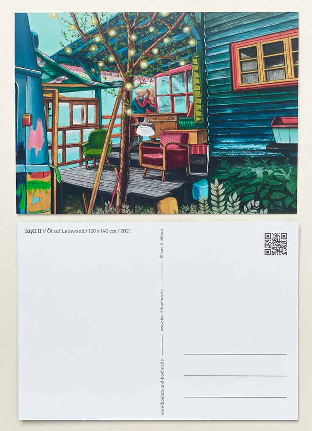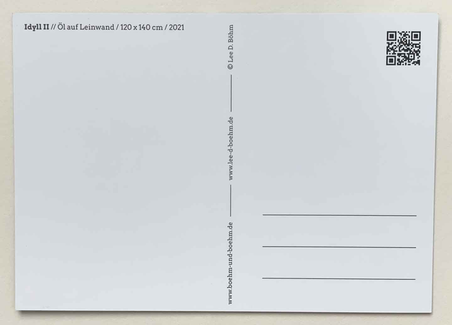 Kunstpostkarte zu den Werken Lee D. Böhms - hier "Idyll II" / Öl auf Leinwand / 120 x 140 cm / 2021