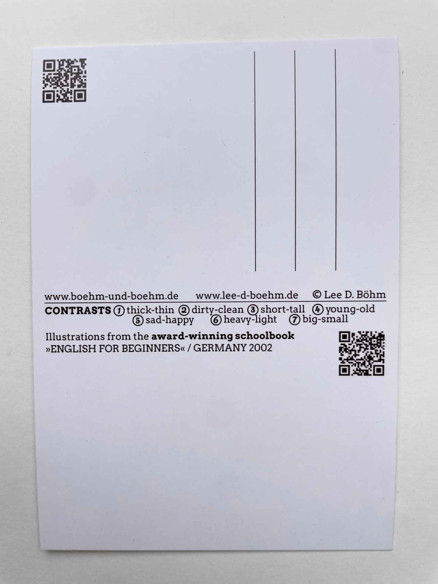 Postkarten- und Postcrossingfans aufgepasst! Motiv: süße afrikanische Motive, Cute Art, Kawai, Illustration aus dem preisgekröntem Buch "ENGLISCH FOR BEGINNERS" / Auszeichnung schönste Bücher Deutschland / Kategorie Schulbuch / Stiftung Buchkunst / Deutschland 2002